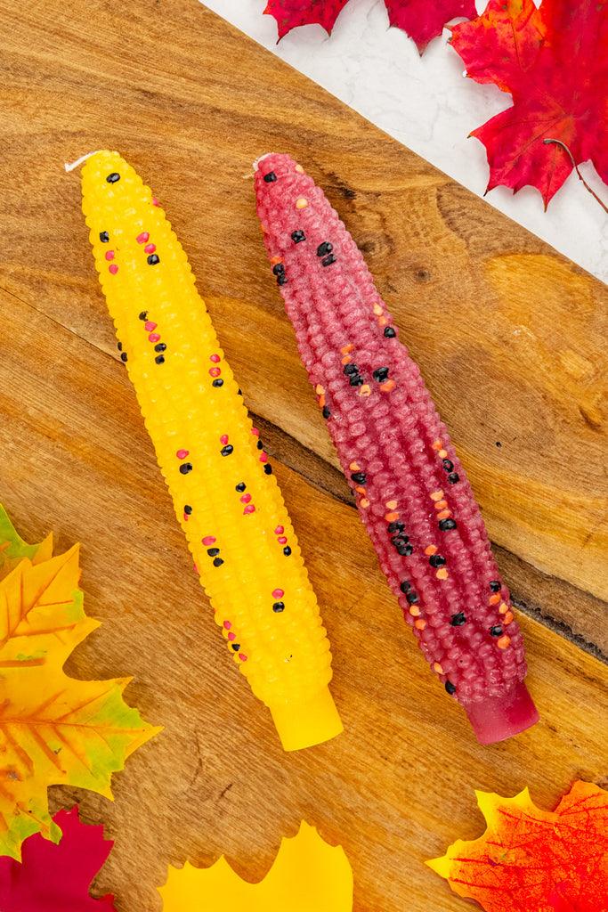 Just in time for fall's bountiful harvest, we are delighted to present these sets of corn taper candles just in time for fall and Thanksgiving gatherings. Elevate your tablescape and celebrate the season with these cheerful candles evoking shucked corn, certain to bring a note of autumnal cheer!