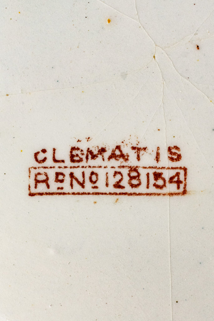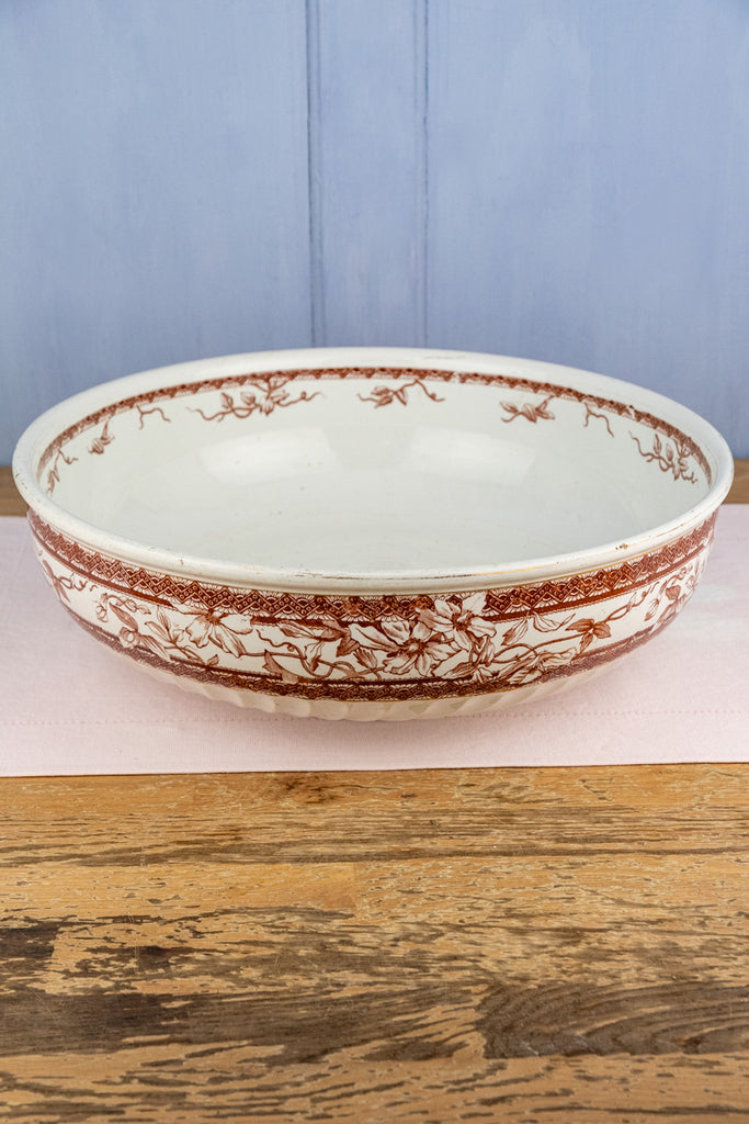 Full of the aesthetic beauty of a time gone by, this Antique Ironstone Basin Bowl is brown transferware featuring romantic floral sprays displaying the lovely clematis flower.