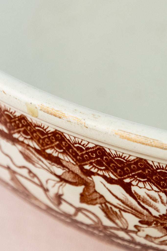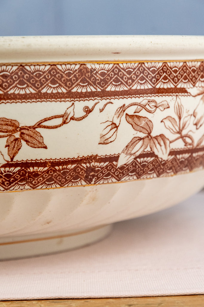Antique English Brown Transfersware Ironstone Basin Bowl
