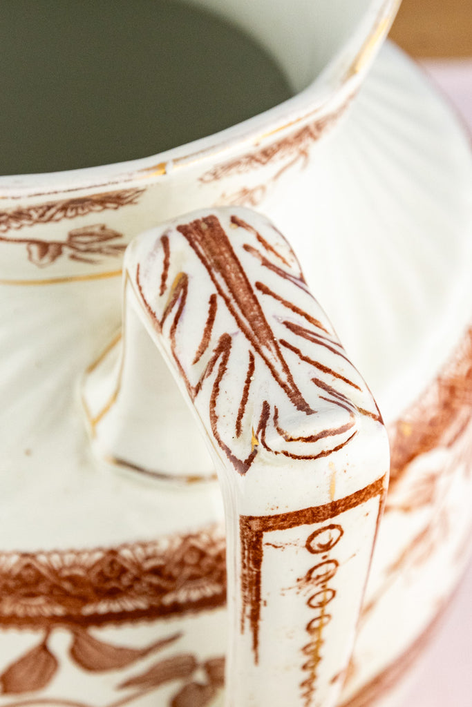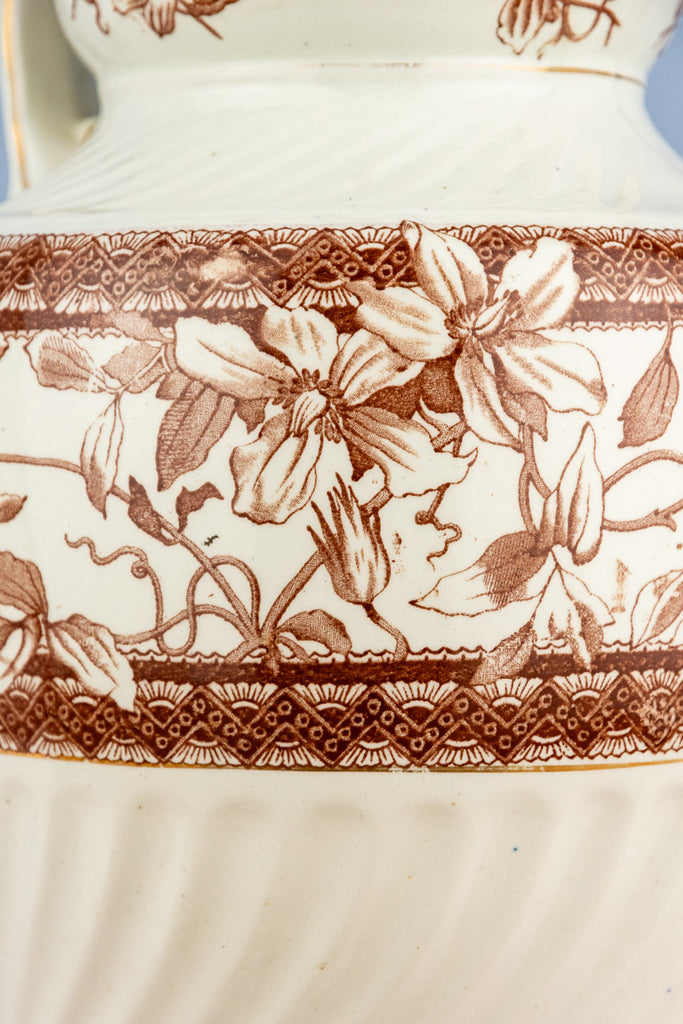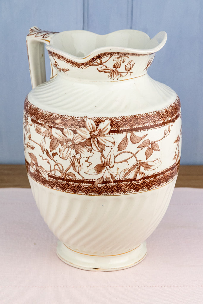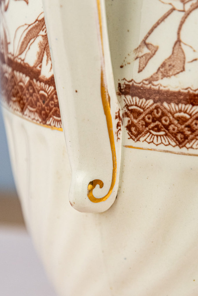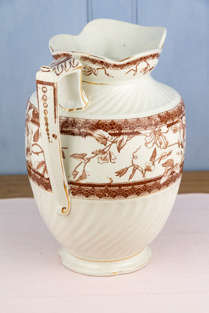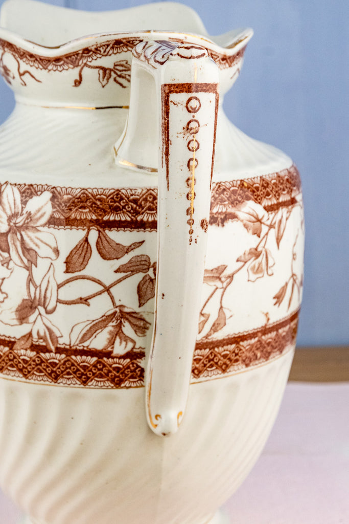 Antique Brown Transfersware Ironstone Pitcher