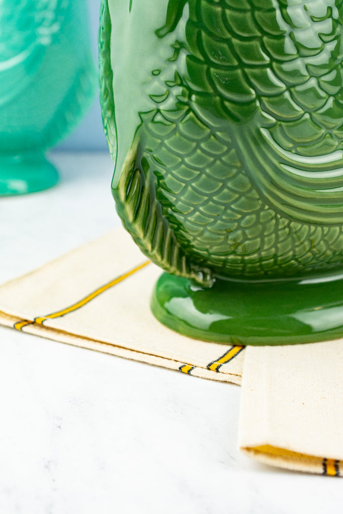 Richly glazed in beautiful shades of green, these delightful jugs will be a storied addition to your home, sure to attract attention whether it is in use or on display.
