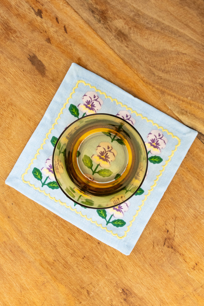 There is something irresistibly cheerful about pansies—their velvety petals and bright faces seem to turn toward the light. These charming Pansy Cocktail Napkins bring that same spirit to the table, scattered with lively blooms in shades of purple, yellow, and fresh green—colors that evoke the very first days of spring.