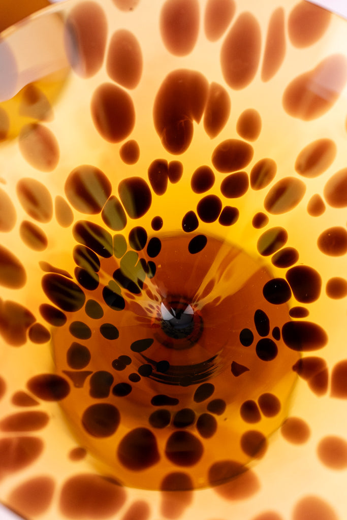 Nodding to this rich history, this pair of tortoiseshell martini glasses is certain to add warmth and richness to any tablescape or bar. Marbled in warm yellow, amber, and coffee hues, each glass boasts a distinct, unique pattern, capturing the allure of natural tortoiseshell.
