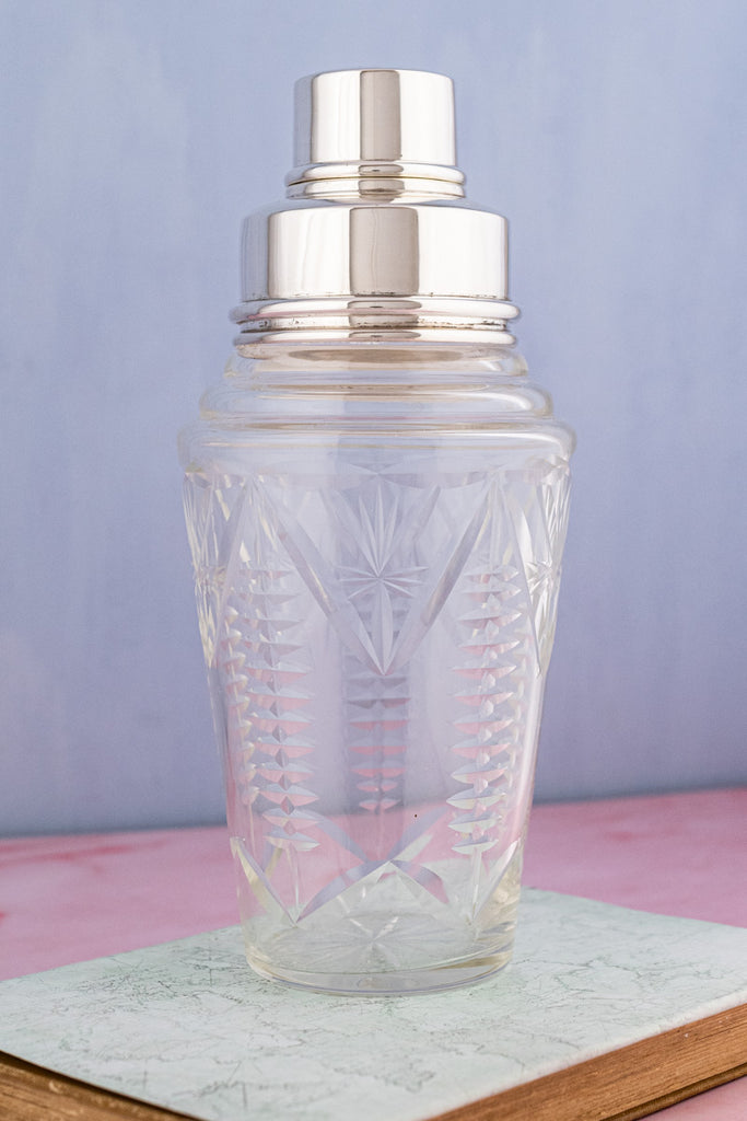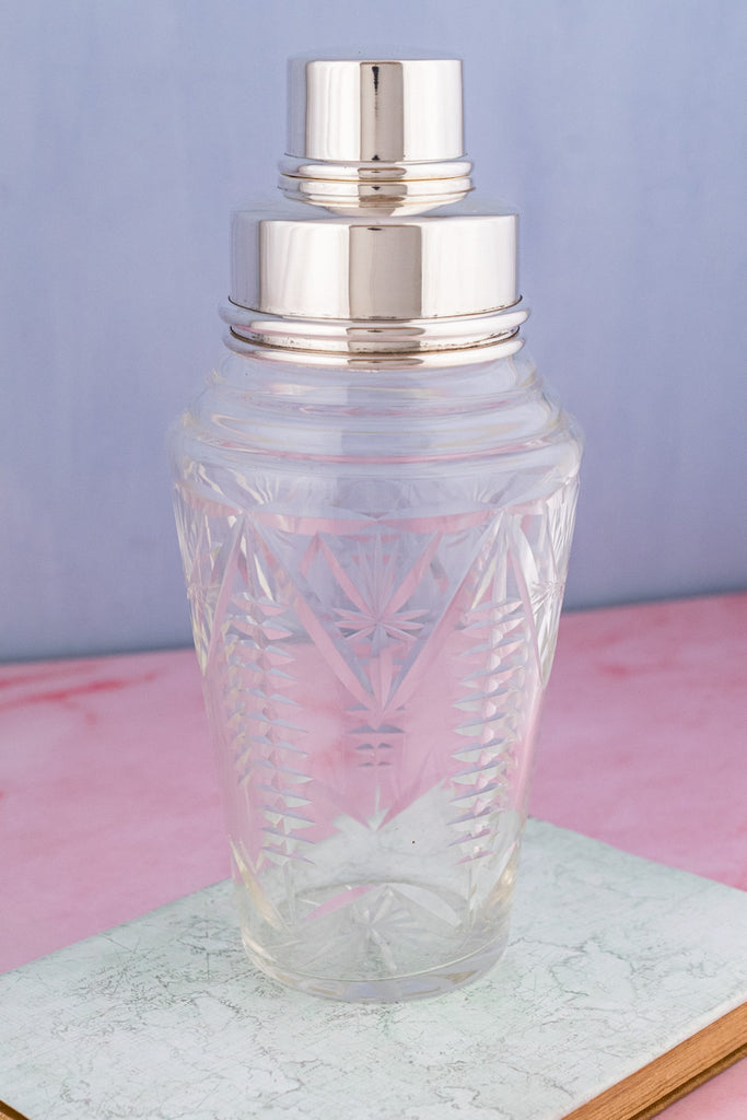 Vintage English Silverplate & Crystal Cocktail Shaker