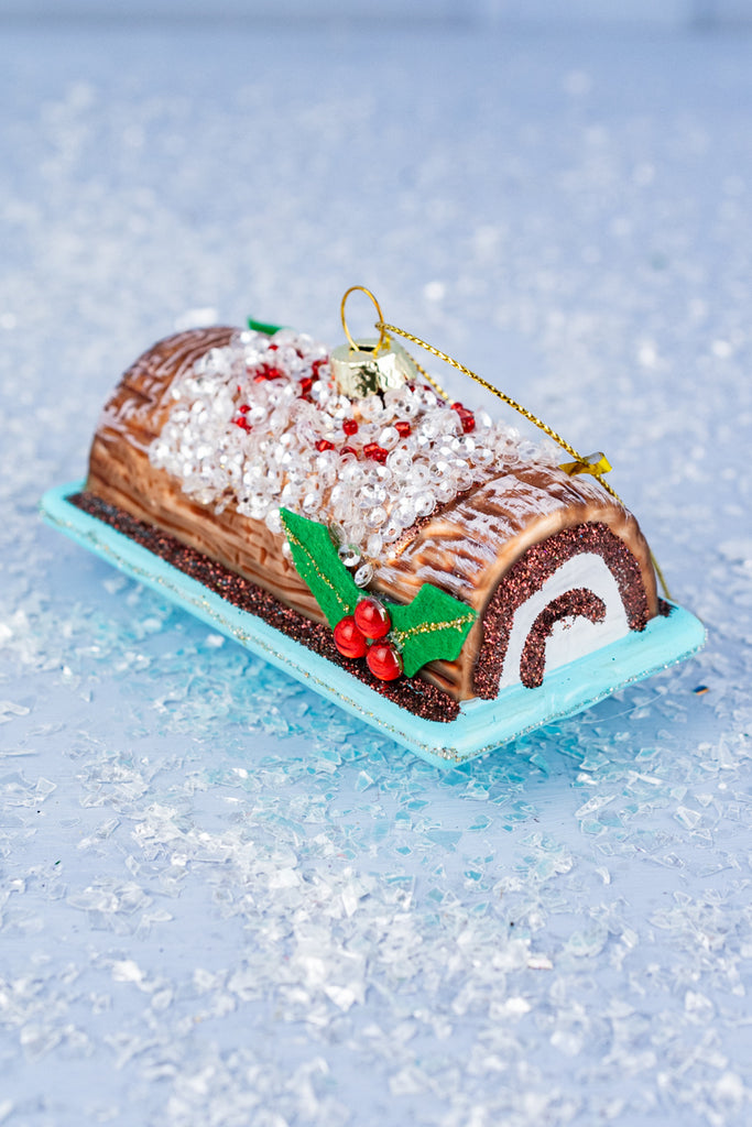 A traditional Yule Log dessert from Christmastime in France, Belgium, Switzerland and Quebéc, delight in the sweet offerings of this charming Bûche de Noël. Carefully fashioned from glass, treat your tree for all of holiday with this charming ornament.