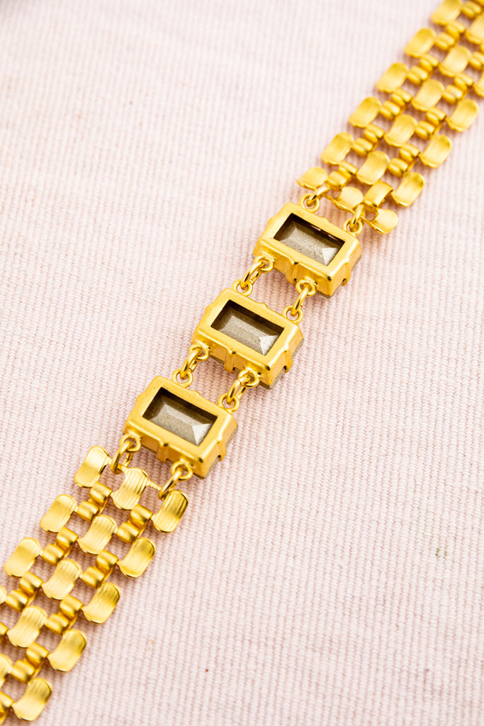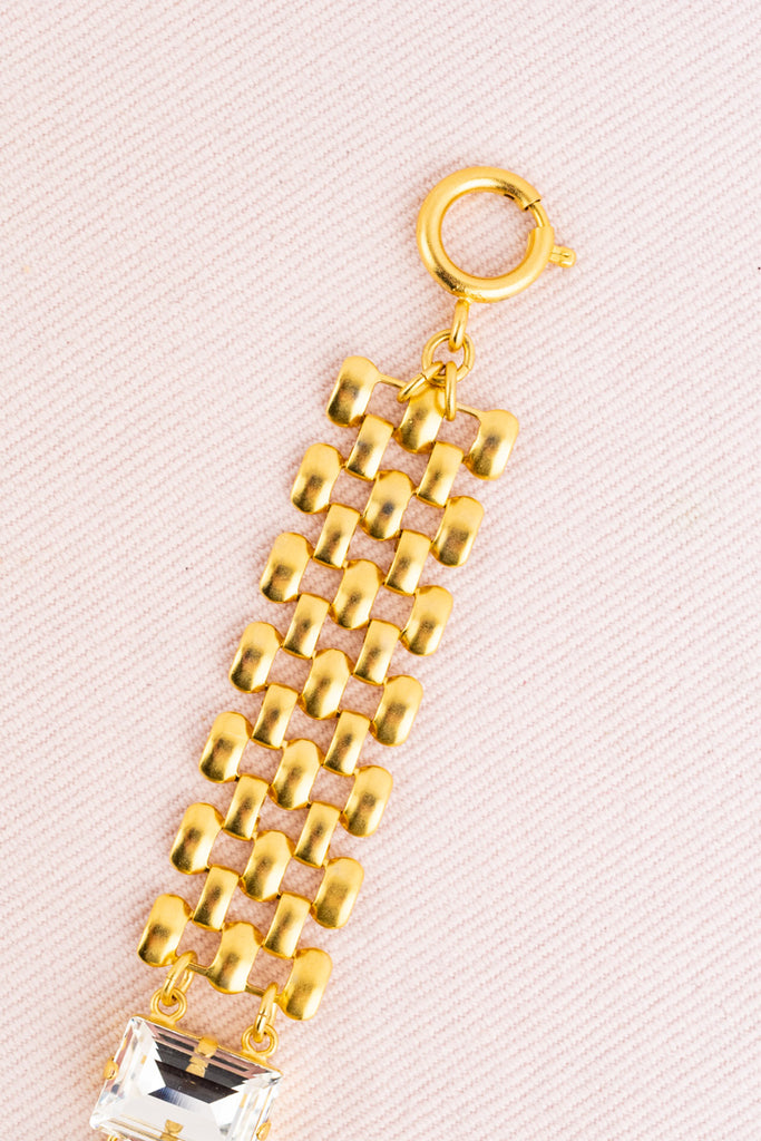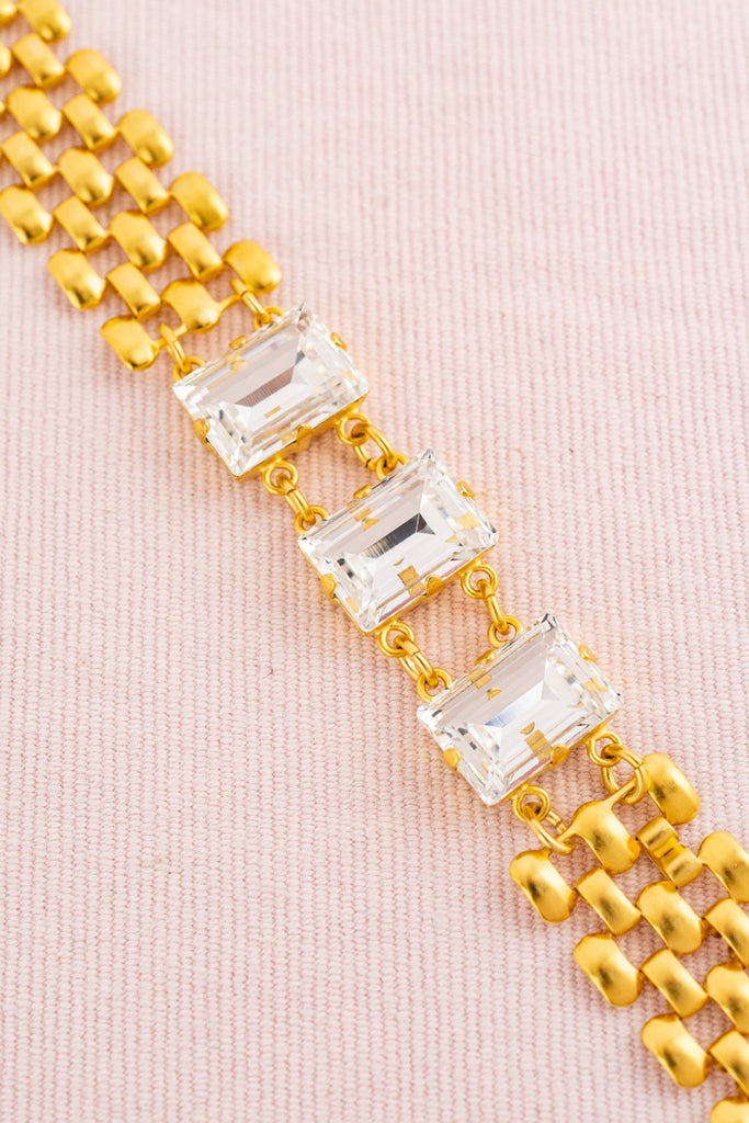 Featuring three extraordinary clear Swarovski crystals fashioned in great detail, this breathtaking bracelet is sure to sparkle in any light, sharing its distinct beauty and captivating allure. With bold links, an adjustable length, and precisely cut emerald-shaped crystals, you're sure to find yourself enraptured by its shimmering glamour.