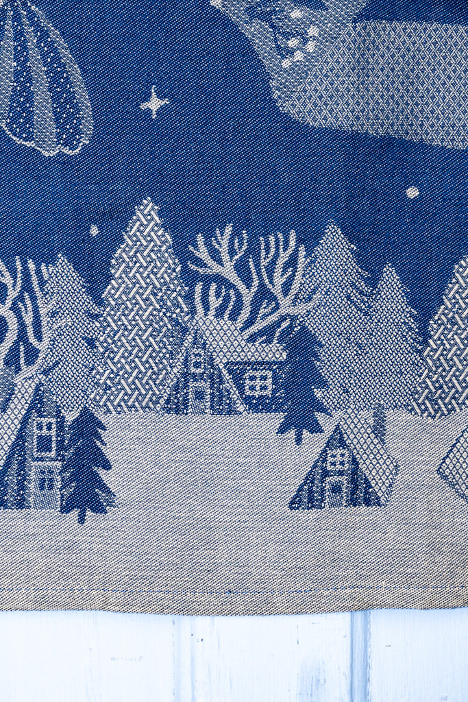 Infused with love and humor from the talented weavers at Tissage Moutet, this Petite Chouette (Tiny Owl) towel is inspired by the magical whimsy of rural French life. Featuring an adventurous owl with captivating eyes in rapt attention on the sky above, the towel is woven in calming shades of blue and cream with sunny yellow. Surrounded by open skies and glimmering stars, the winsome owls appear to be delivering a magical livre to its final destination across the heavens.