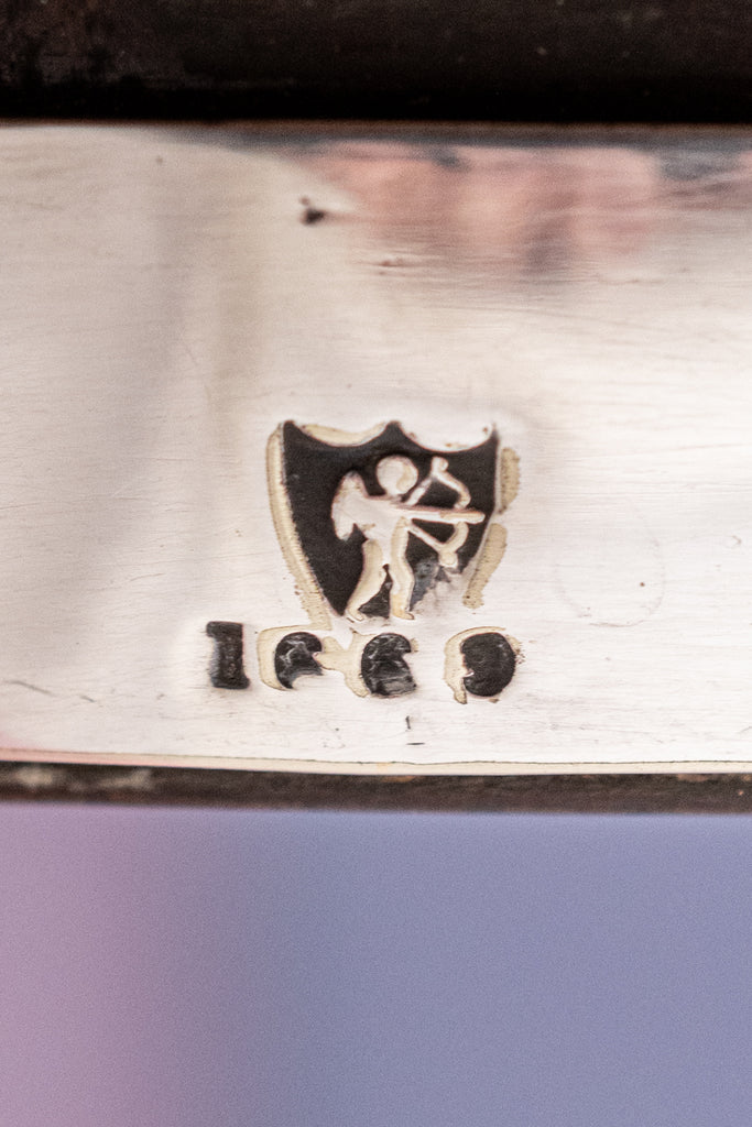 This signature piece was crafted by the esteemed Birmingham firm John Grinsell & Sons, known for quality tableware as well as their distinctive "Cupid Standing on a Scroll" trademark, first registered in 1879. Whether storing an aged cognac, whisky or your newest penchant, this grand Edwardian bar accessory assures an elegance that promises to elevate every occasion. From weeknight nightcaps to entertaining special guests, this remarkable dispenser is sure to earn pride of place on your home bar.