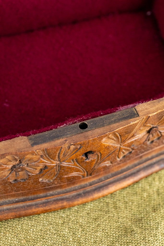 With a natural and charming aesthetic, delicately crafted flowers and leaves, and silken pink and red felt lining, this find is truly a work of art. Sure to lovingly keep your precious jewelry and handsome belongings in true fashion, this lasting souvenir is at once rustic and refined, sharing its naturalistic beauty even still.