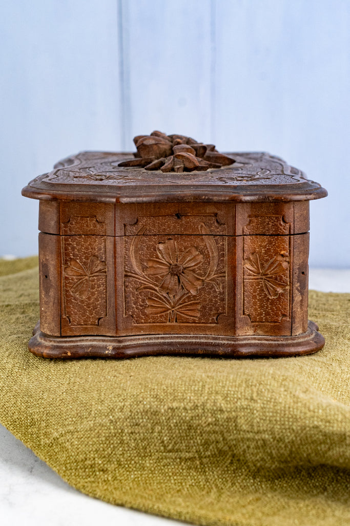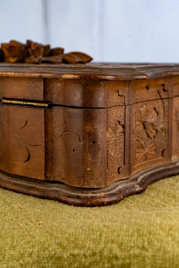Antique Swiss Fôret Noir Edelweiss Wooden Box