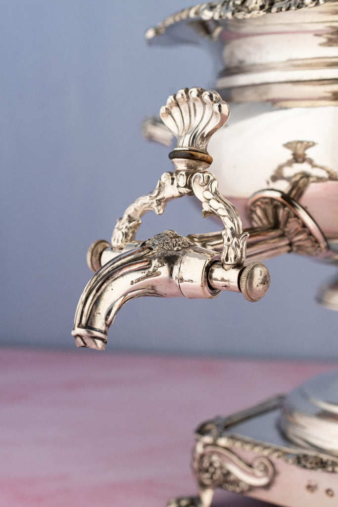 Once commonplace in stately homes, urns of this lovely condition and ample capacity have become increasingly scarce. Most often used today for keeping brewed coffee or tea at serving temperature, these antique finds are sure to have enjoyed a rich social history - privy to all manner of midnight buffets, clandestine weekend encounters, family gossip and joyful milestone celebrations.