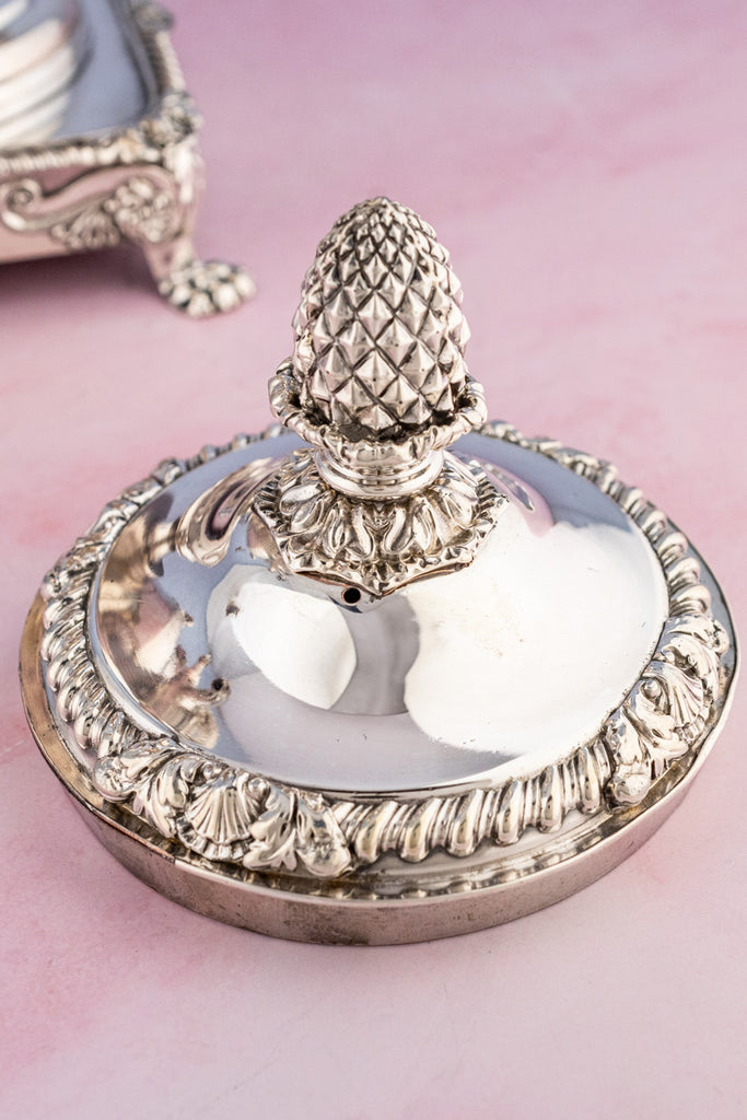 Sure to make a lovely impression on the sideboard and eager to attend your next holiday brunch or garden party, this lasting piece of classic English silver by a renowned English historical figure still radiates with its certain sparkle, pledging loyal service for years to come.