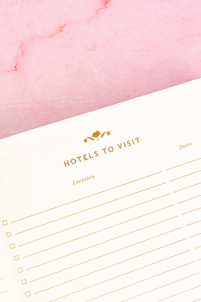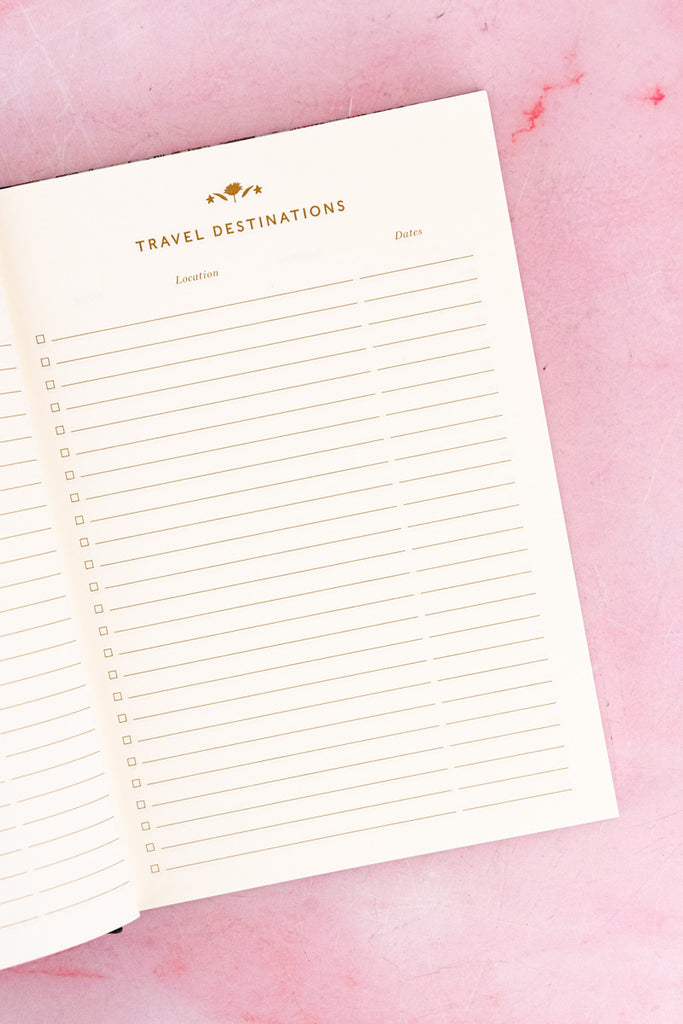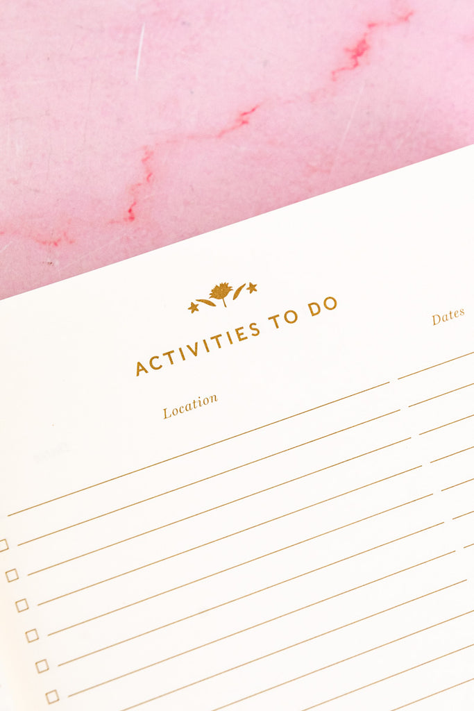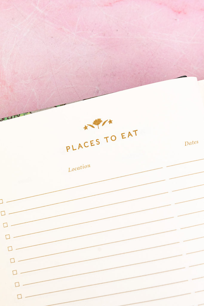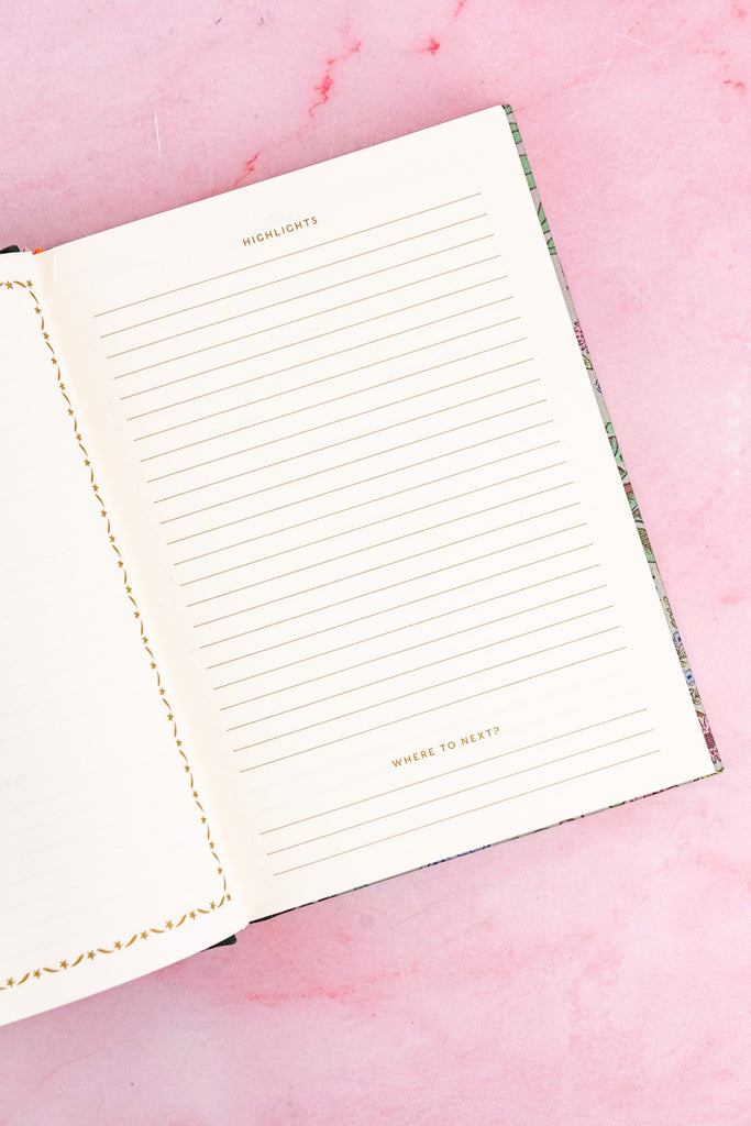Filled with 240 uncoated, acid-free pages and a smart grosgrain ribbon to mark your place, this guided journal is both practical and inspirational. In addition to sections for sights to see, activities to do, places to eat, and hotels to visit, you'll find pages to reflect on dream travel destinations and be inspired to tuck souvenir ephemera and paper mementos within. A fun way to muse about future adventures while documenting those in the present, this lovely book is sure to become a treasured companion.