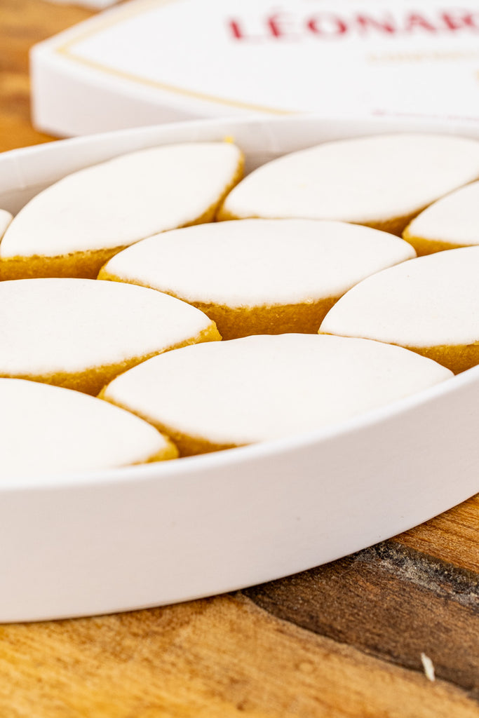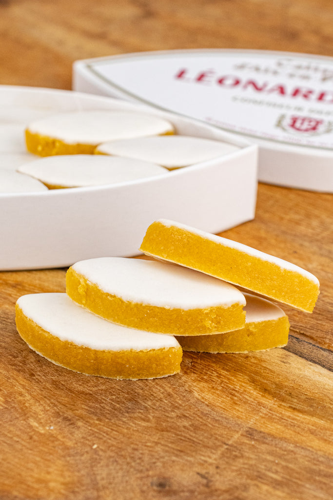 Direct from Provence, we invite you to experience the sweet, sublime creations of Léonard Parli. This striking Léonard Parli French Calissons Gift Box is filled with traditional calissons from this luxury confiseur. A celebrated almond-shaped confection rarely available outside France, these distinctive sweets are crafted from smooth candied melon fruit paste and ground almonds topped with a thin layer of royal icing.