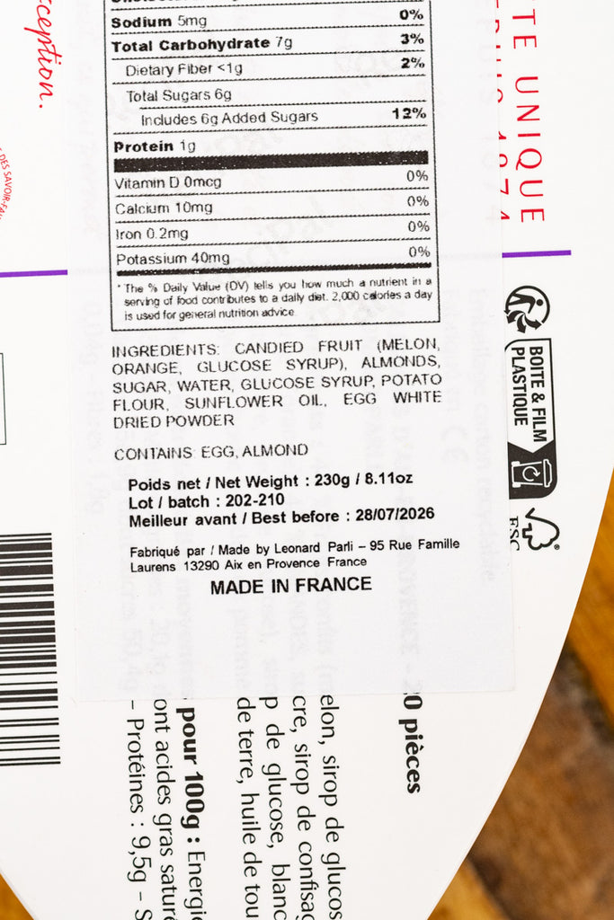 With a proud regional heritage centered around Aix-en-Provence, Léonard Parli has been producing fine calissons since 1874, aided by artisanal granite stone-ground mills that preserve the pure taste and delicate texture of each ingredient. Presented in a sleek almond-shaped box, this lovely cache contains a total of 20 calissons perfect for holiday gifting.