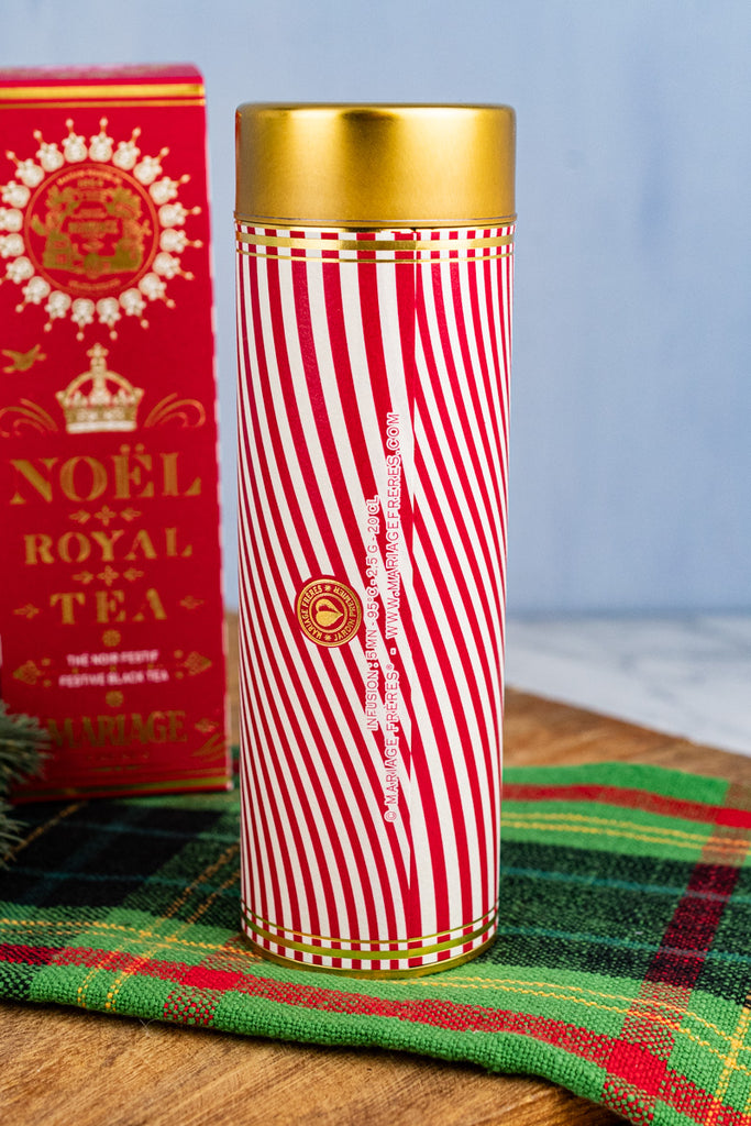 Royal (Black Tea): Just like a fairy tale, this black tea tells a beautiful story of noble tea leaves, fabulous fruits and captivating spices. The rich and generous notes amaze the palate, evoking the most royal of Christmas tables. Bright accents of bergamot leave a delightful impression and a "happily ever after" finale. The red and white striped canister is as irresistible as a candy cane.