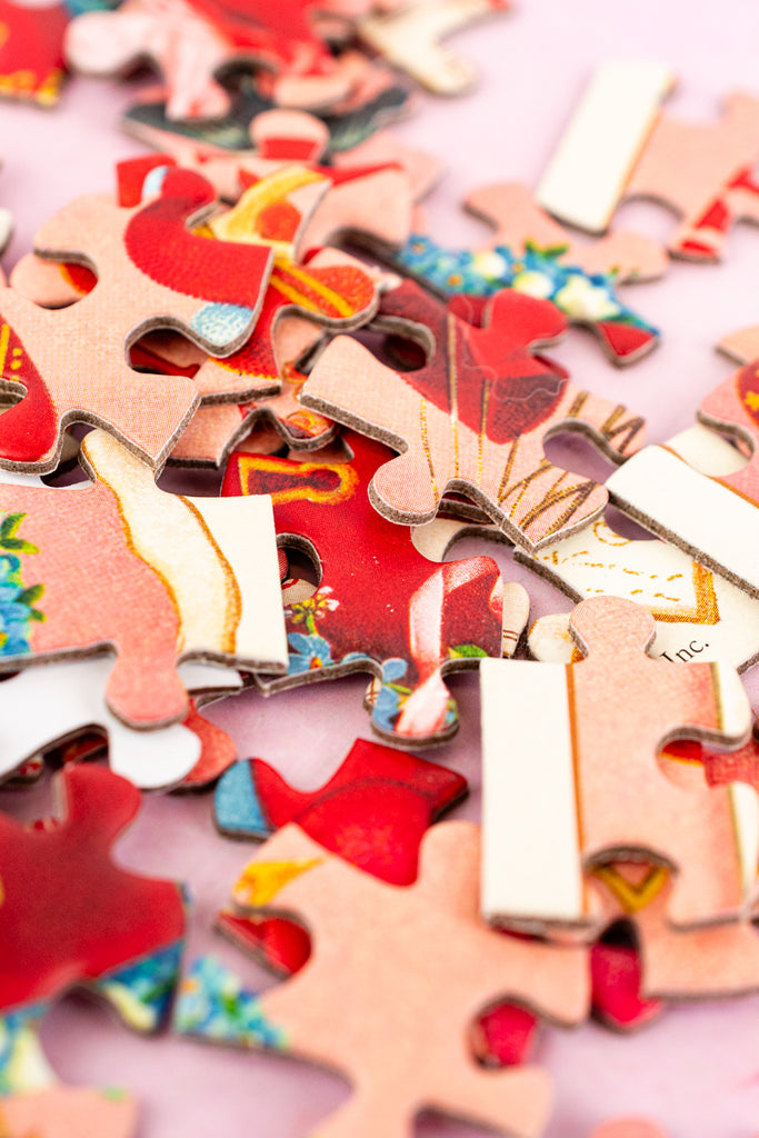 Certain to delight your own funny Valentine, this Cavallini & Co. 240-piece mini puzzle is sprinkled with charming vintage hearts and illustrations that seem to have fluttered in from a Valentine’s postcard of another era. Each piece carries a touch of nostalgic magic, making it a delightful way to spend a cozy afternoon with someone you adore. Presented beautifully, it also makes a perfect gift—sure to be treasured long after the final piece is in place.