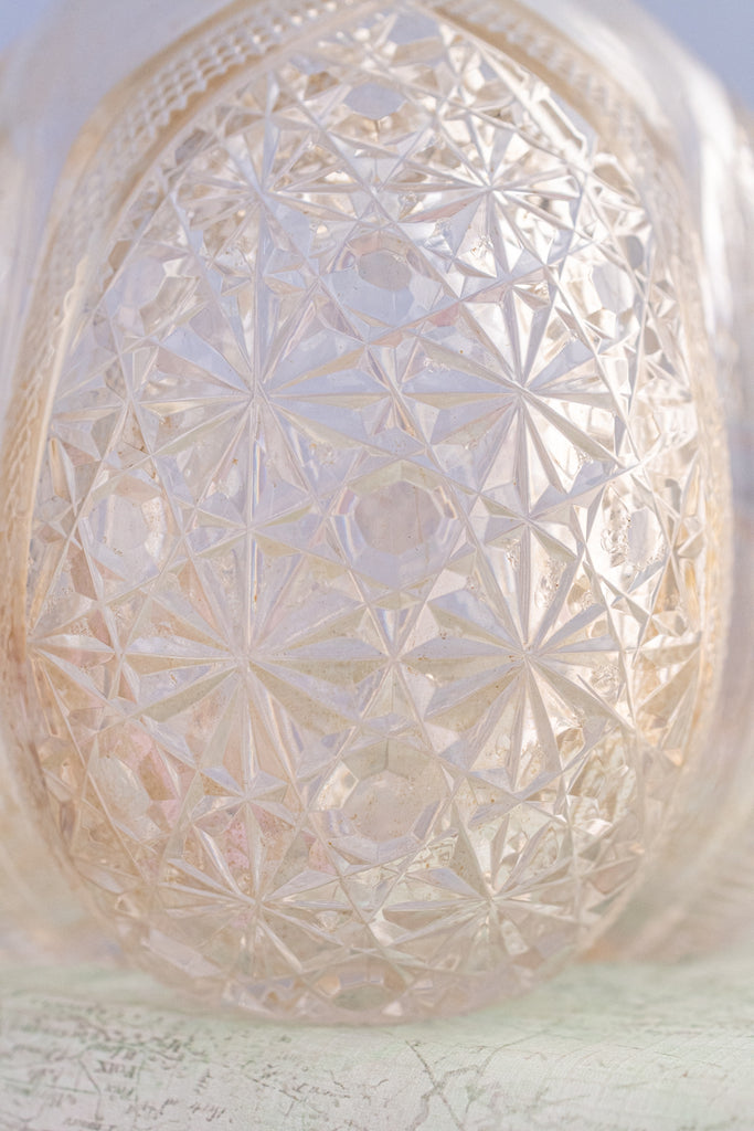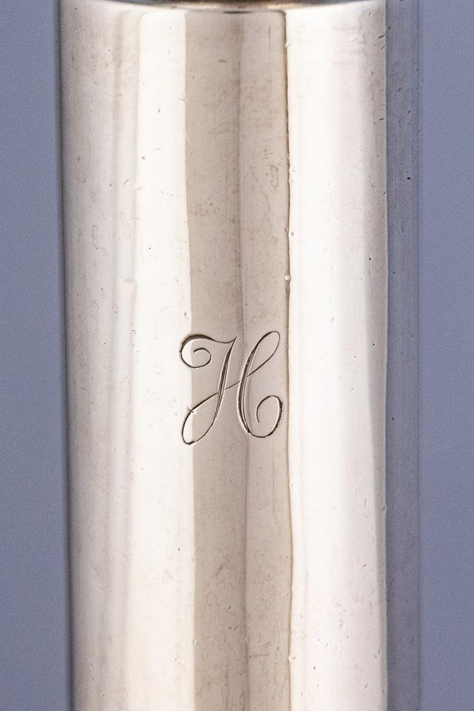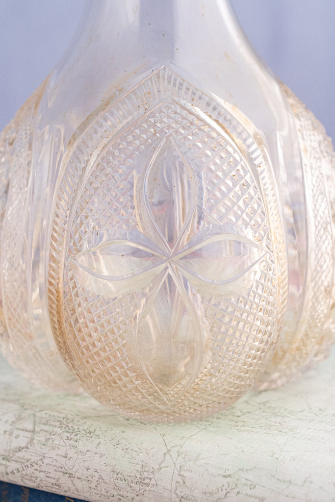 A beautiful example of serveware designed to captivate distinguished guests, this grand decanter was engraved with the monogram "H" for further distinction. Designed for maximum allure while dining or drinking by candlelight, the addition of liquid to the decanter creates a stunning effect in which the engraved cuts within the glass glimmer and dance in the flickering light.