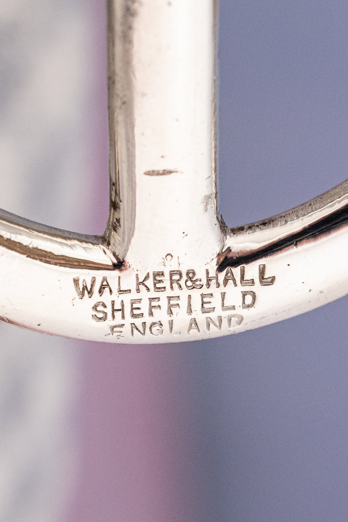 Created by the esteemed and prolific silversmiths at Walker & Hall circa 1905–1910, this lovely Edwardian design is sure to elevate your daily bread to new heights. This sure-footed caddy sparkles with style and culminates in a sweeping handle ring that rests above the golden slices.