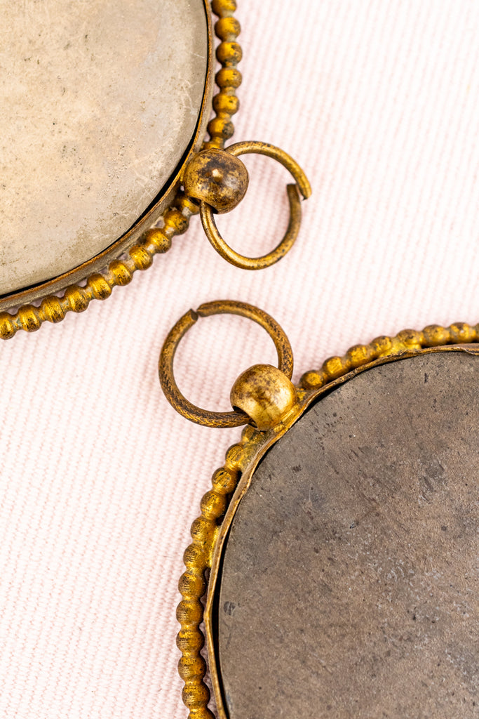 Each beaded brass oval frame holds its beveled glass firmly in place, the softly worn finish lending just the right measure of age and character. Designed to hang on the wall, these frames were originally intended to hold cherished portraits, and they still invite the same intimate use today.