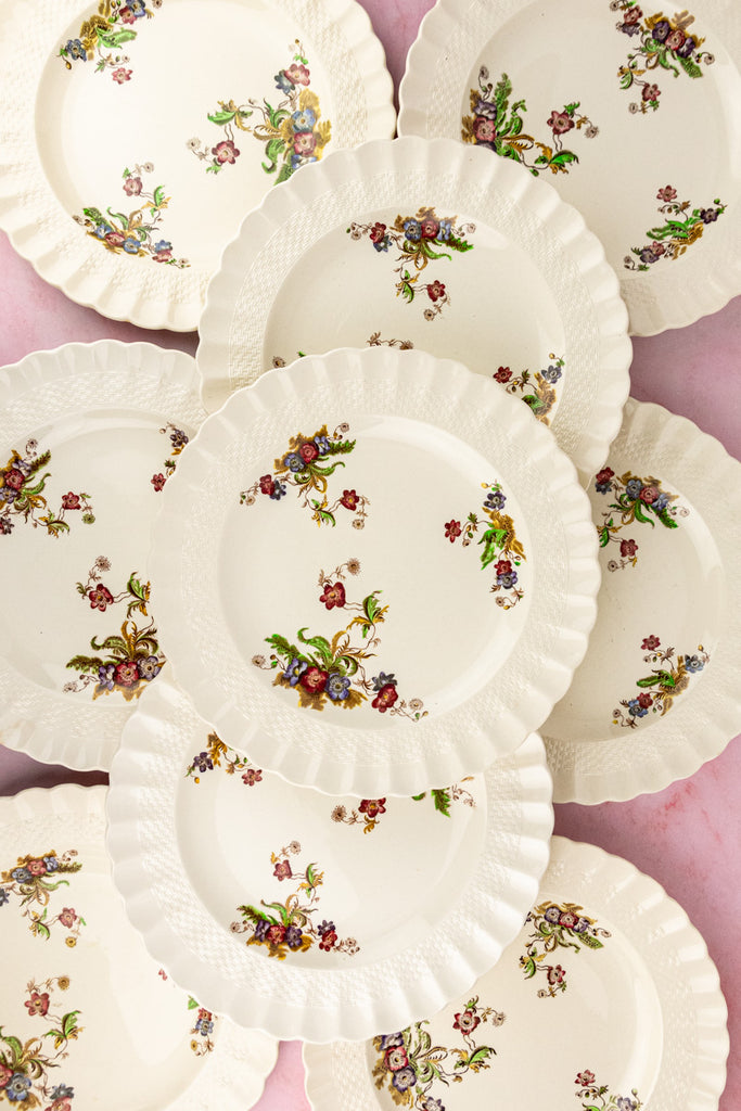 First introduced in the 1921, this optimistic pattern of lively blooms upon a creamy background is called Wicker Lane. With the dimensional movement of flowers playfully escaping from a hand-gathered posy and a regal color palette befitting the fine legacy and craftsmanship for which Spode has been prized for more than 250 years, these plates promise to elevate any tablescape. At home for the most formal of occasions, yet brimming with cozy charm, the generously sized plates are equally impactful for supper à deux as dinner for eight. Also lovely on display, this striking set with its eternal appeal is sure to remain fresh and timeless through the generations.