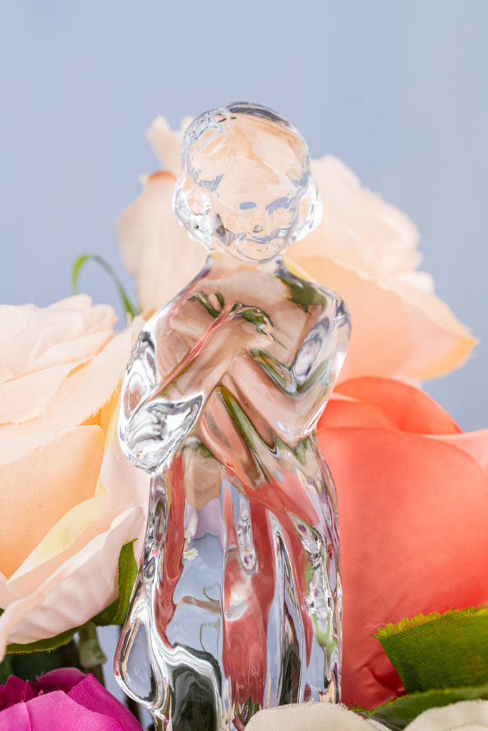 For the avid gardener, flower lover, or glass collector, this graceful and refined figural arranger promises to become a much-reached-for accessory within your entertaining or tablescape repertoire. The perfect backdrop for arranging everything from a hand-picked posy to seasonal décor, we are confident this sculptural ornament, with its opulent form, would make an exquisite gift or addition to any home.