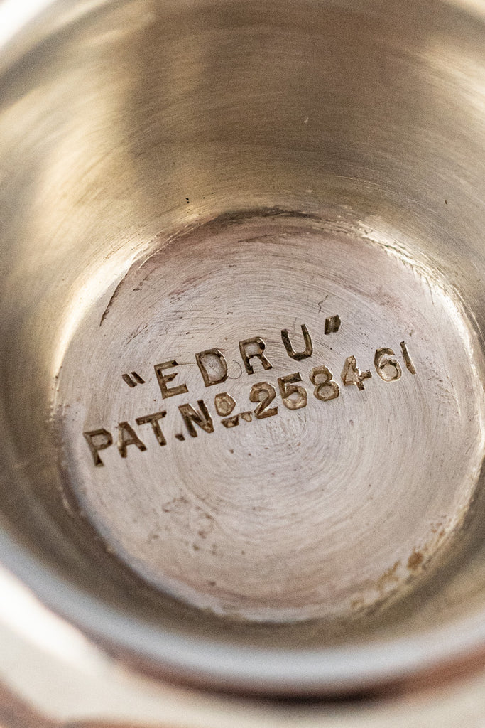 With a brilliant crystal tapering cylindrical body embellished with elegant cut details designed to catch the light at every turn, gently shaking your favorite cocktail elevates even the most humble spirits. Not to be outdone by the sparkling crystal, the sterling ringed neck and cap gleam with refined elegance. Complete with its original hallmarked sterling silver mount and detachable push fit stopper, the shaker bears a patent number and the trade name 'EDRU.'