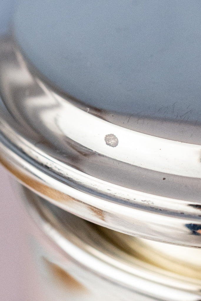 In a clever nod to the barnyard rooster - also known as a cockerel - cocktail shakers, cocktail picks and glassware were often decorated with images of roosters. Whether whimsical or classic, the jaunty cockerels happily announced, "It's cocktail time!” Decidedly more subtle, and teeming with sophistication, this exceptional Antique Sterling Silver and Cut Crystal Cocktail Shaker captures all the mystique of that "original" cocktail era.