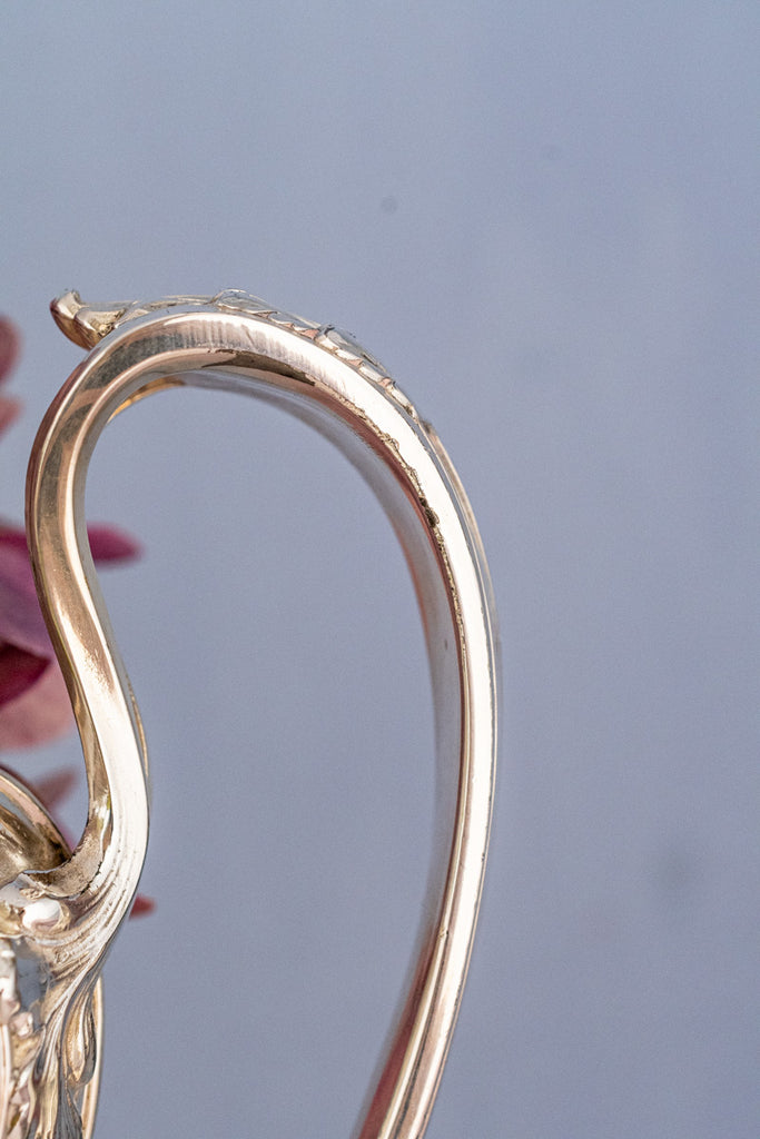 Adorned in expert silverwork that creates a most regal impression, this captivating piece was executed by talented artisans at the great Württembergische Metallwarenfabrik (WMF). Founded in 1853 in Geislingen, Germany, WMF's fine glass and silver quickly rose to the height of European fashion following medals of distinction at the Great London Exposition of 1872.