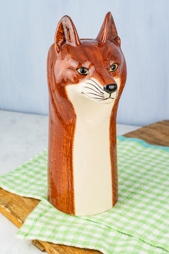 A fresh take on every chicken keeper's nemesis, the naughty fox, this adorable renard is the inspired creation of England's Quail Ceramics. Founded two decades ago by ceramicist Debbie Beevor, this renowned British pottery is celebrated for creating distinctive pieces that are simultaneously whimsical and elegant. From spring tulips to luscious iris and dahlias, this precious vessel will showcase your favorite blooms and weekend market finds in fine style. With its high-quality top-rack dishwasher-safe finish, this lushly executed fox can withstand the rigors of continuous use.