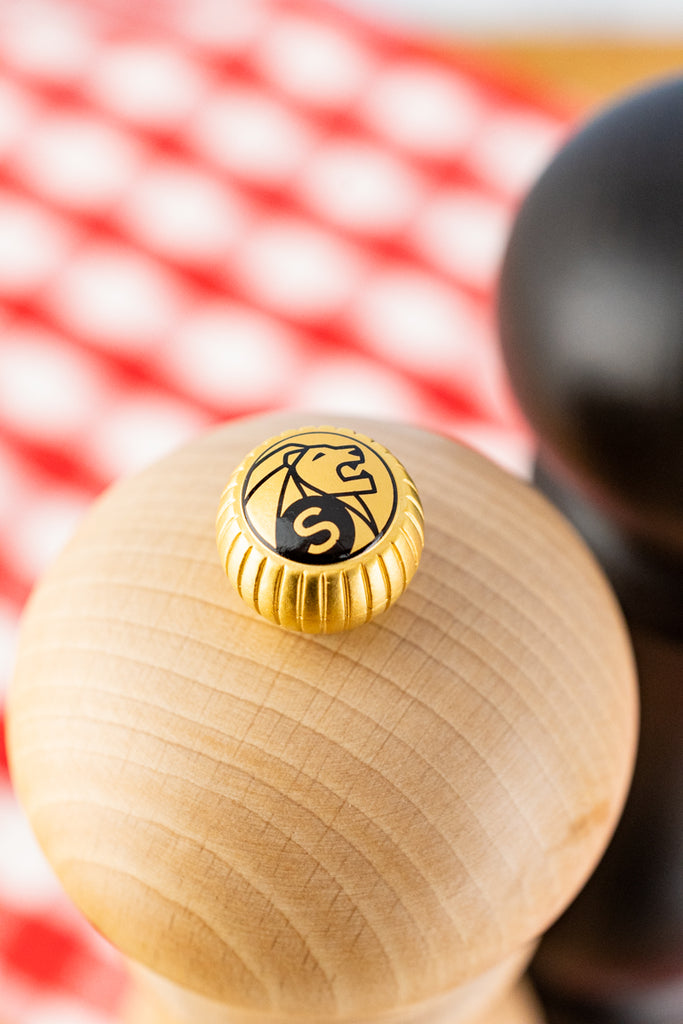 An enduring icon of French table design, the Peugeot Paris mill is instantly recognizable by its generous yet slender silhouette and signature crowned button bearing the Peugeot lion. Timeless in form and beautifully balanced, these 9" mills—finished in warm natural wood for salt and rich chocolate-toned wood for pepper—bring a classic, confident presence to both everyday meals and more formal tables.