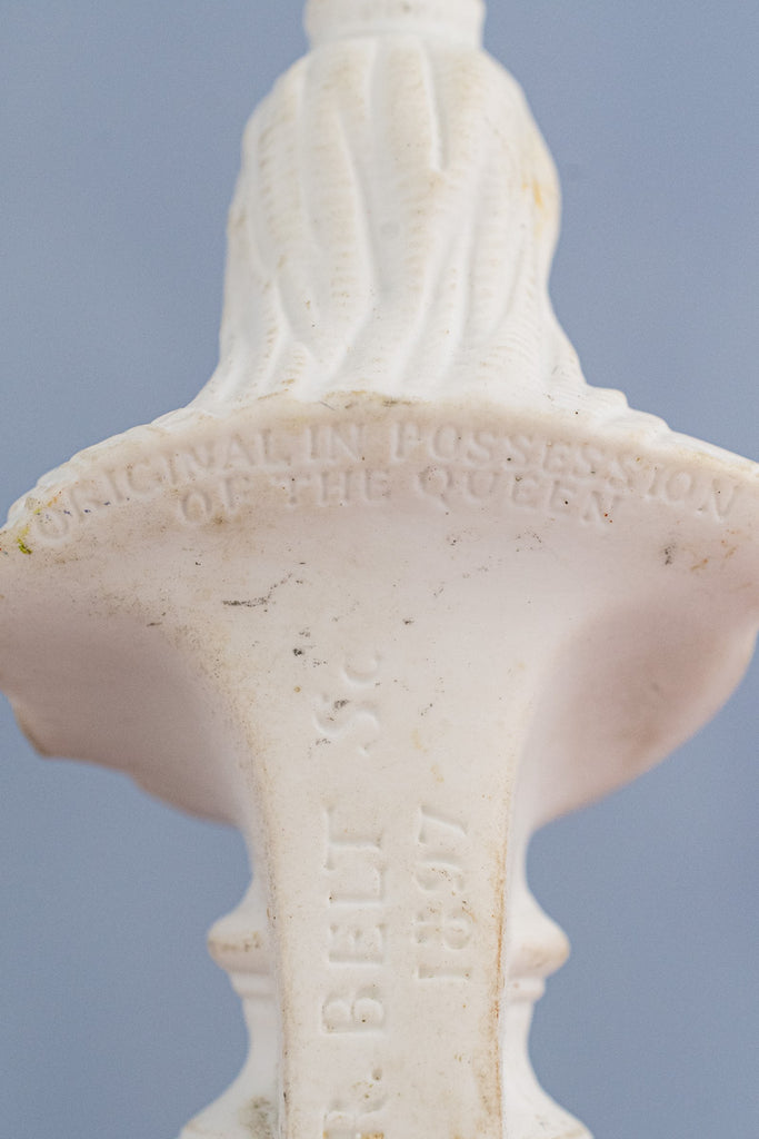 Impressed on the reverse side 'R. Belt Sc 1897', 'C 1897 Parian Ware', 'Original in the Possession of the Queen' and 'Made in Germany', this charming bust with its storied history is a lovely example of royal memorabilia produced to commemorate grand royal events through the ages. Highly collectable, the appeal of these objects goes far beyond memorializing an event long past. They remain works of art, having captured the spirit of their time as much as they capture our imaginations today.