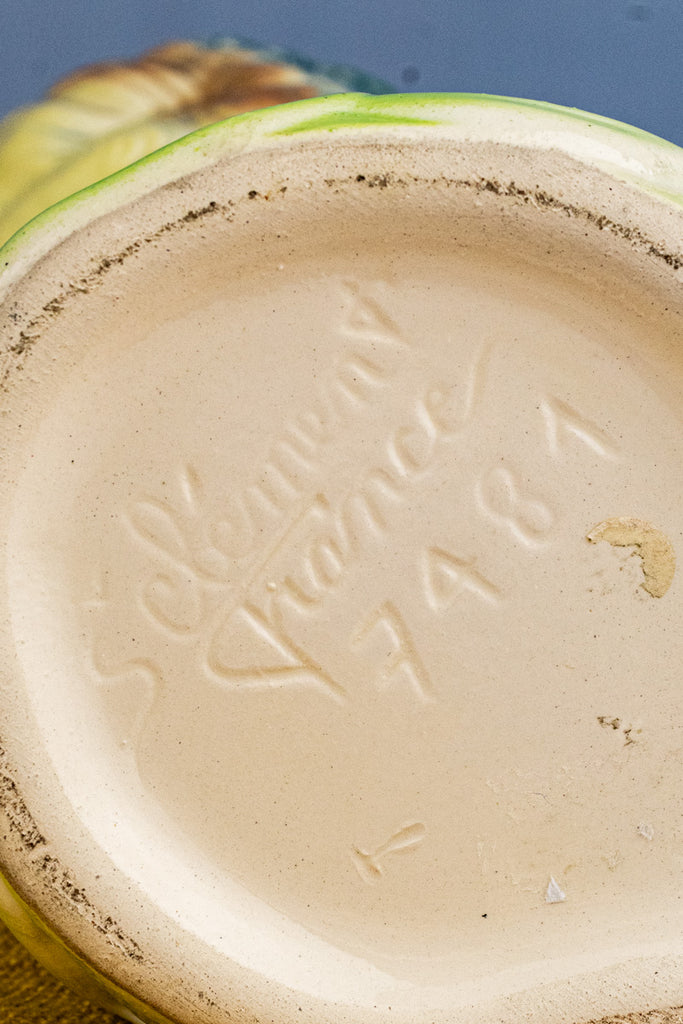 The Saint Clément pottery was founded in 1758 in the village of the same name, located in the Lorraine region of northeast France. Producing classic French faïence, the firm became known for its majolica pitchers in the form of animals. Beginning in the 1920s production also consisted of tableware and household items of fine earthenware, in addition to their whimsical animal pitchers.